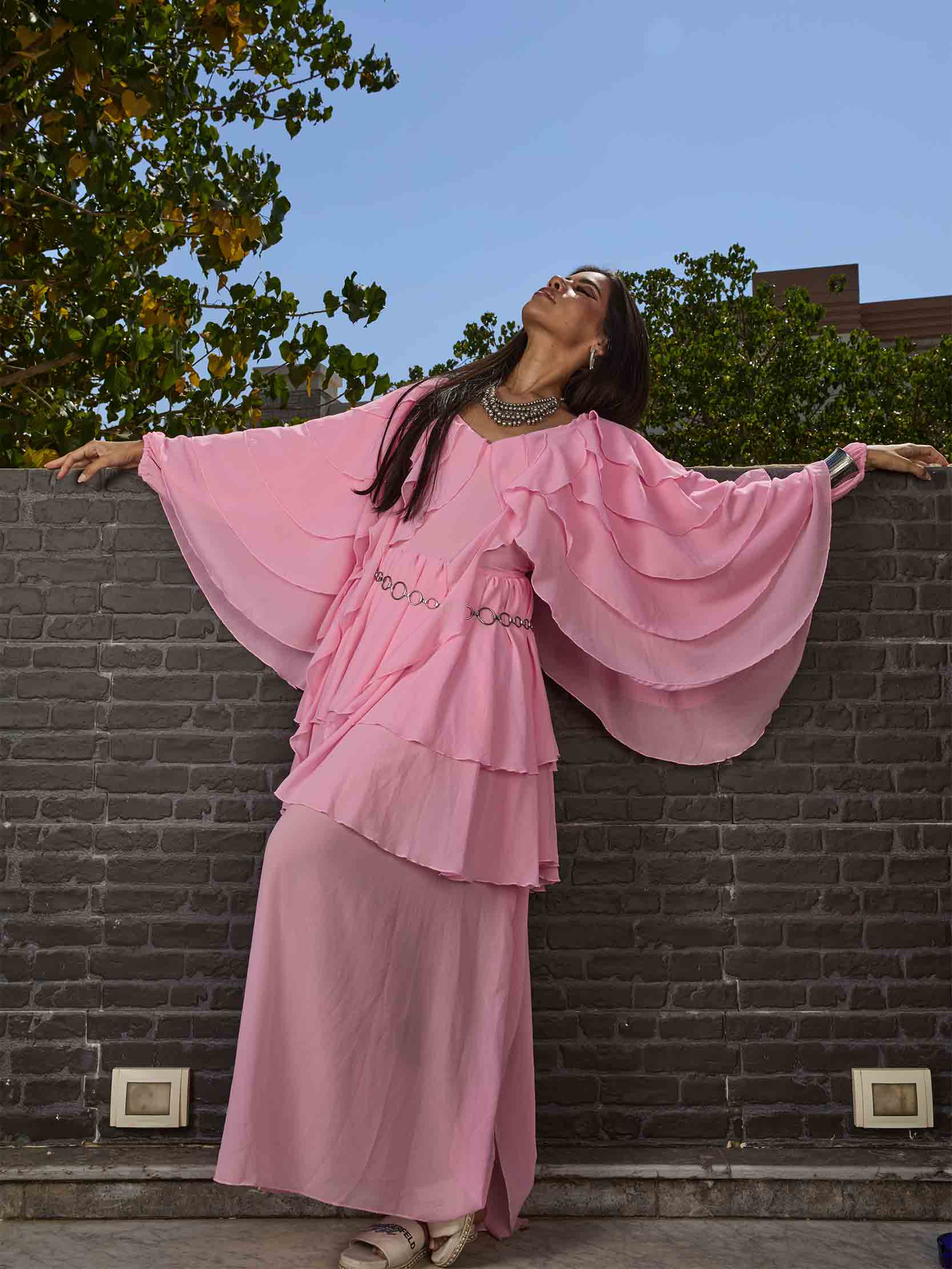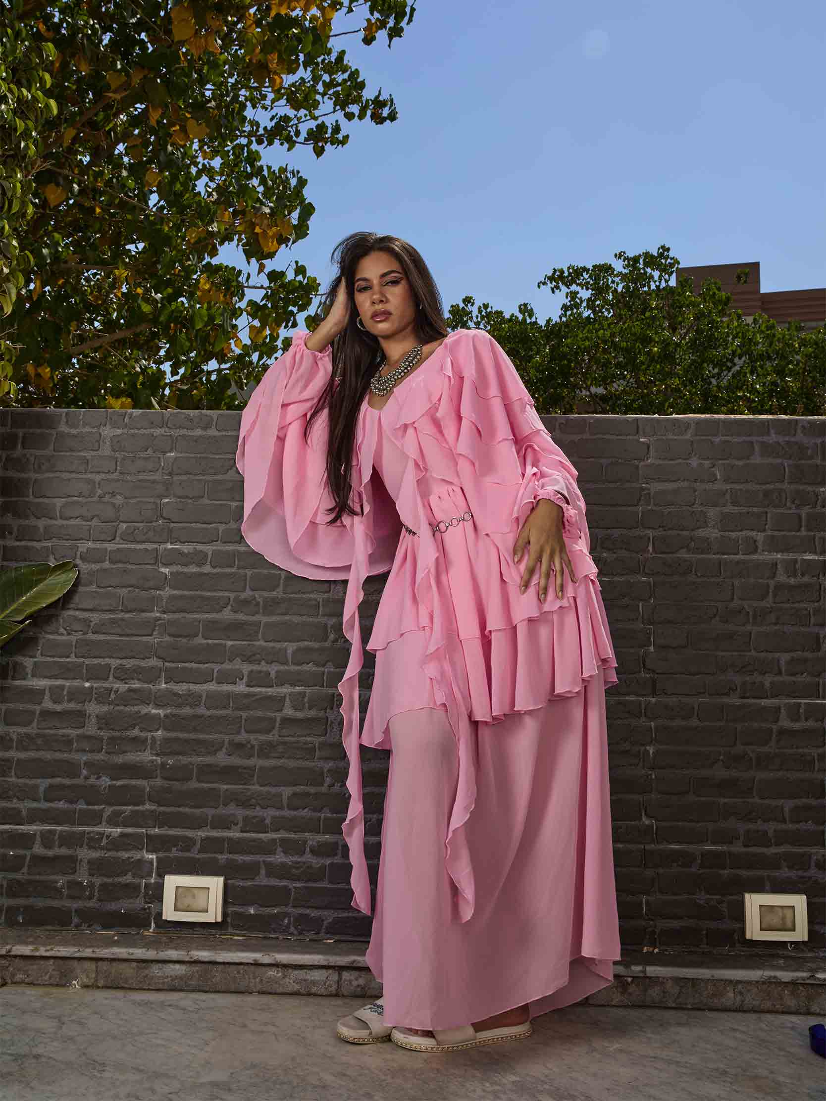 Diverso Collection - boho layered ruffled dress long , M , pink , Style D2505BS