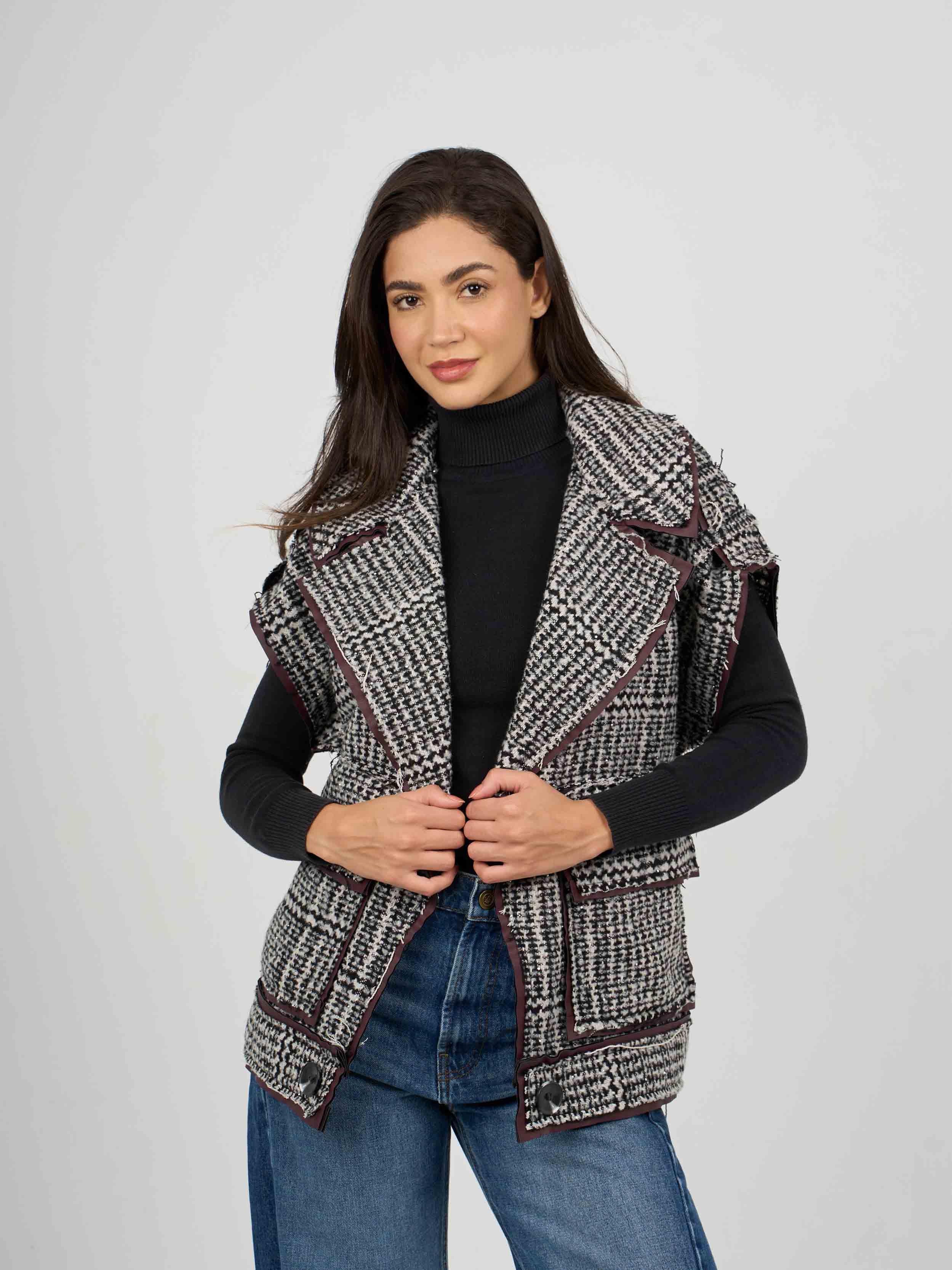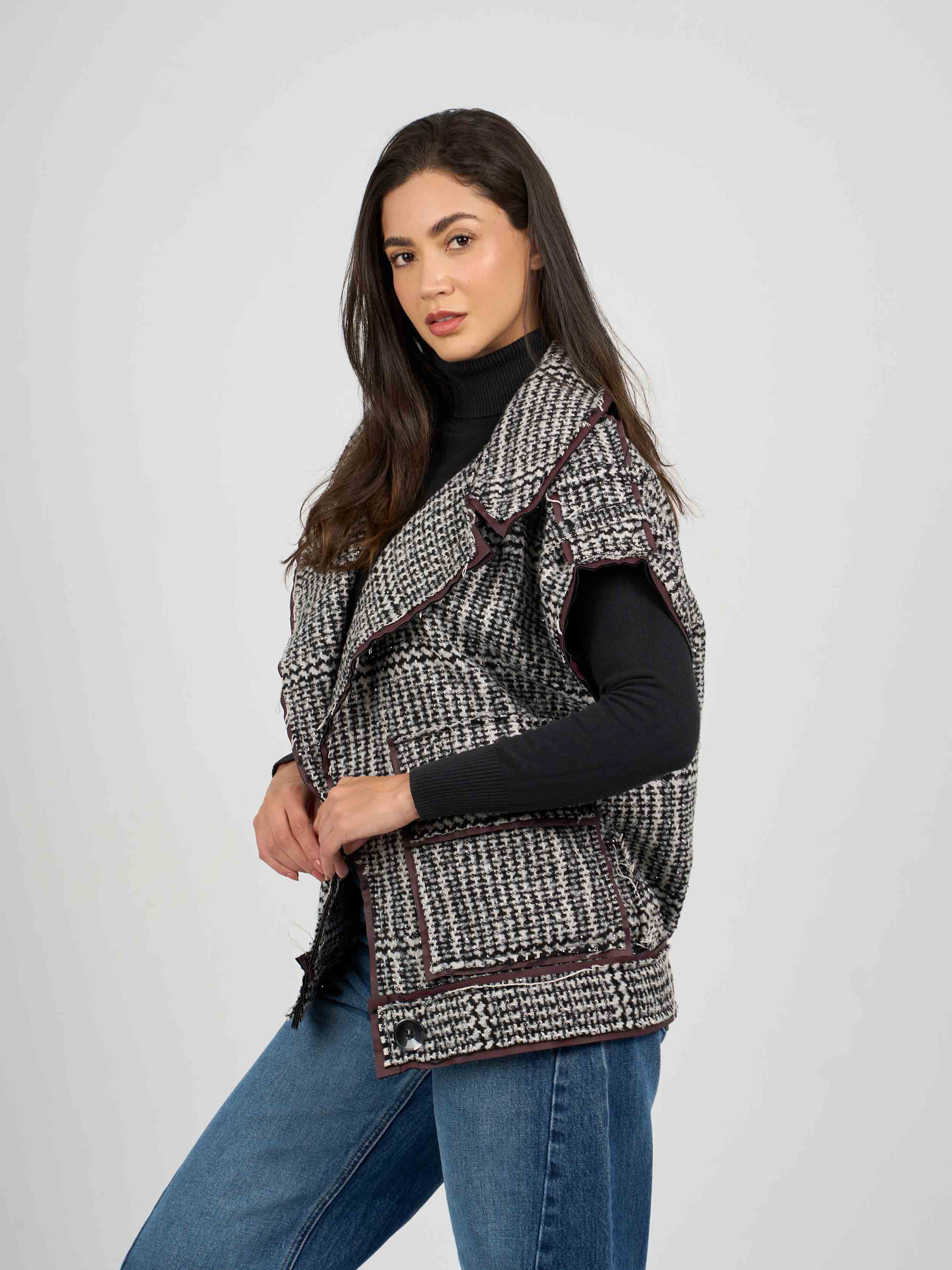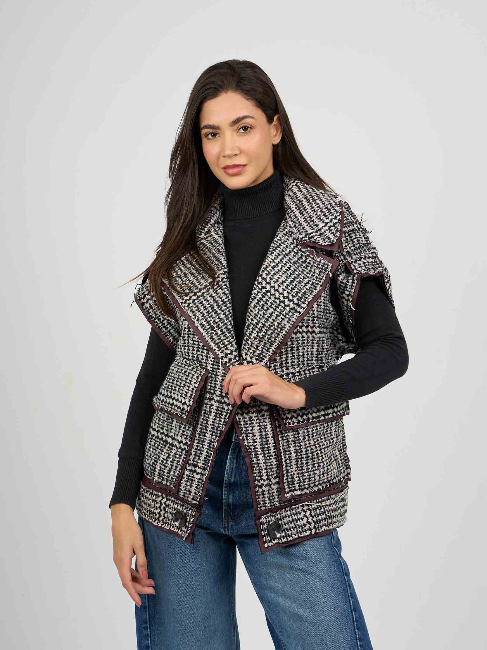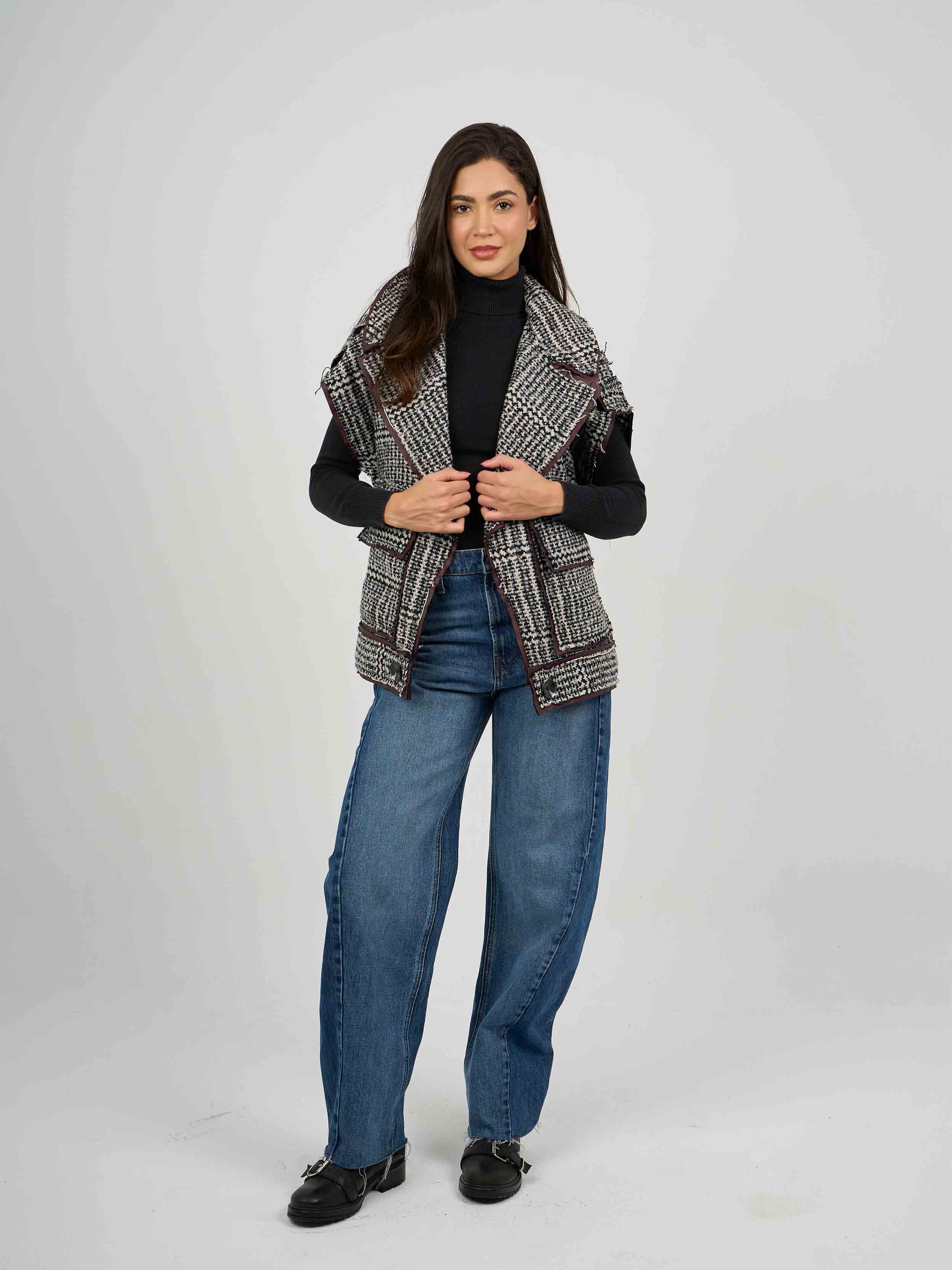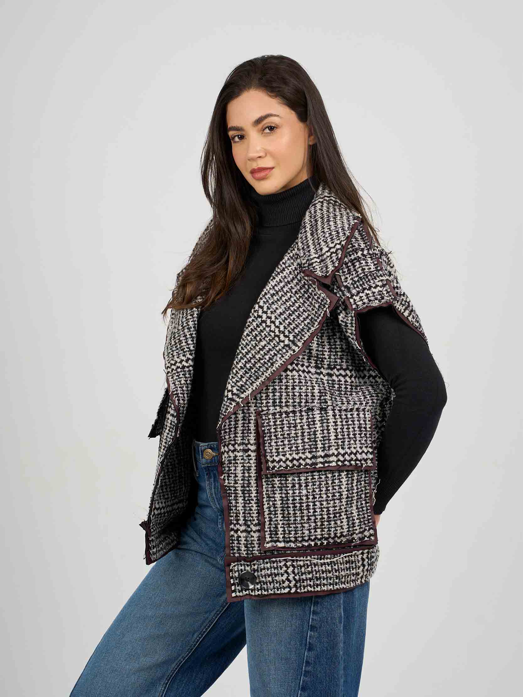 jay collection 1 - vest wool caro , os , BlackxWhite , Style JayXDAAW258