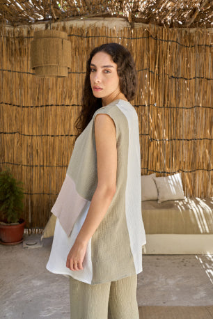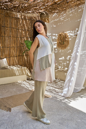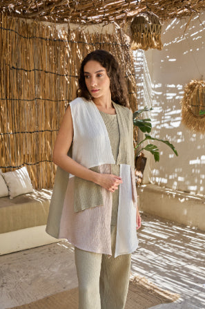 by jay - Oversized Linen Kimono With Layering Patchwork
