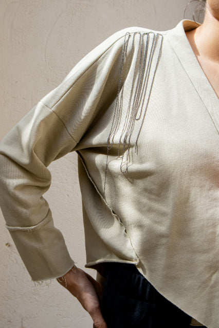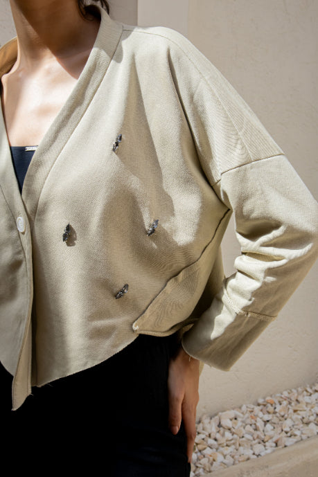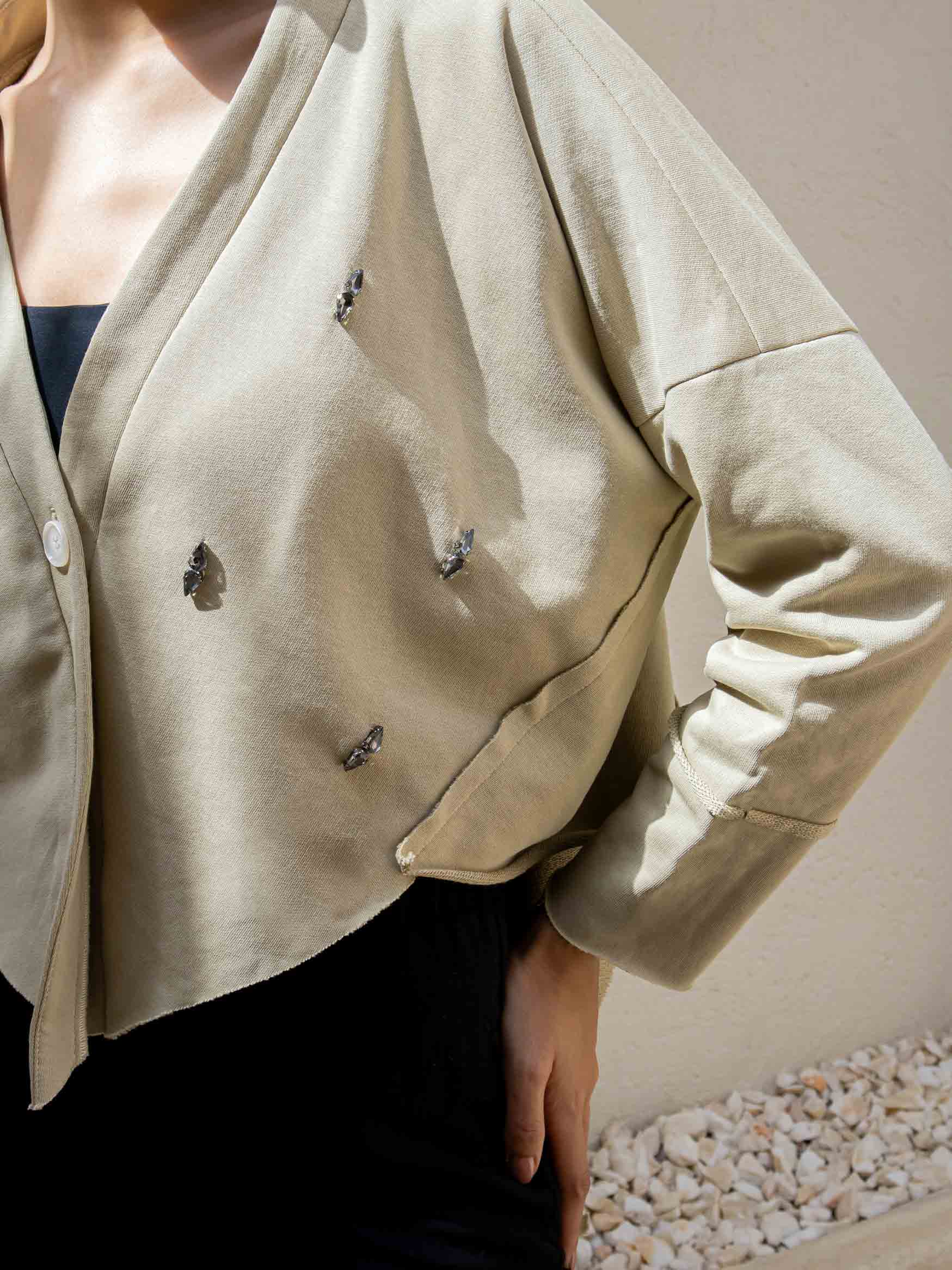 jay collection 5 - short jacket patch work , os , beige , Style JayXDUSS25250