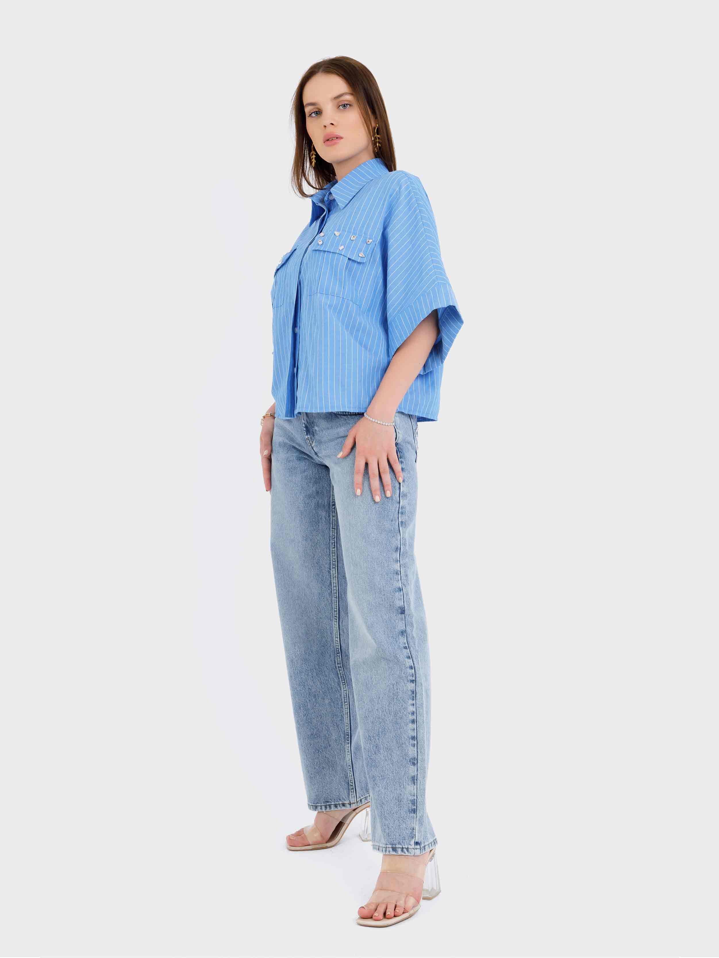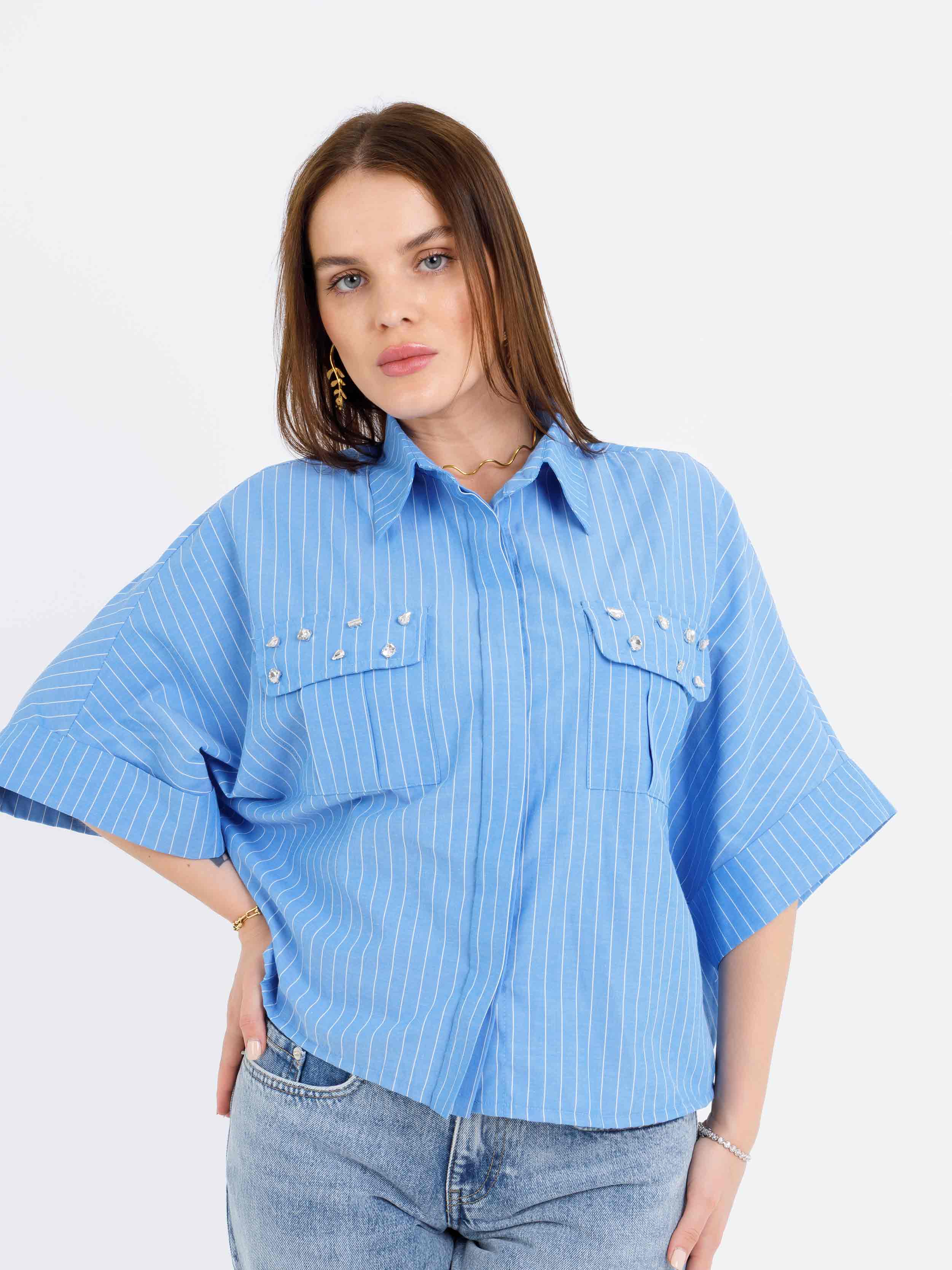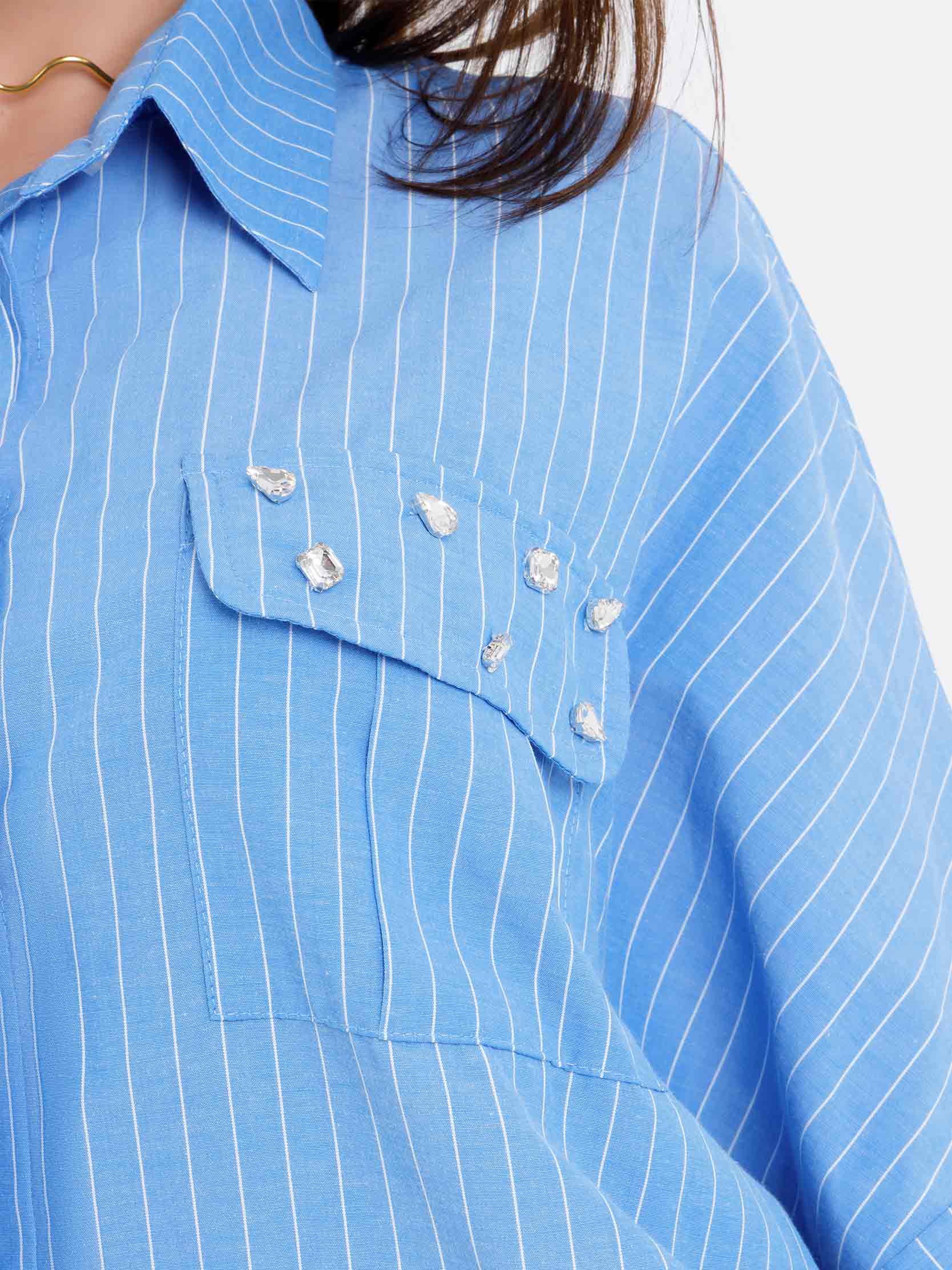 jay collection 5 - stripe shirt with diamonds , os , blue , Style JayXDUSS25272