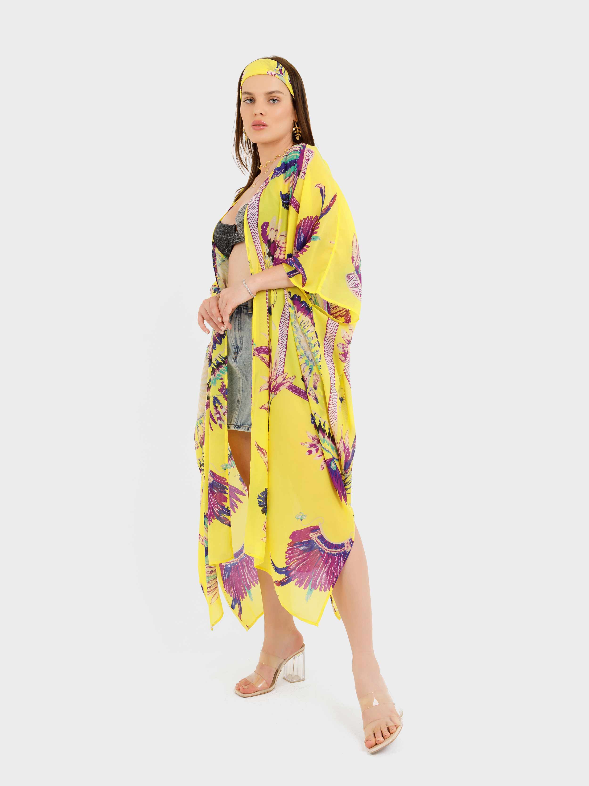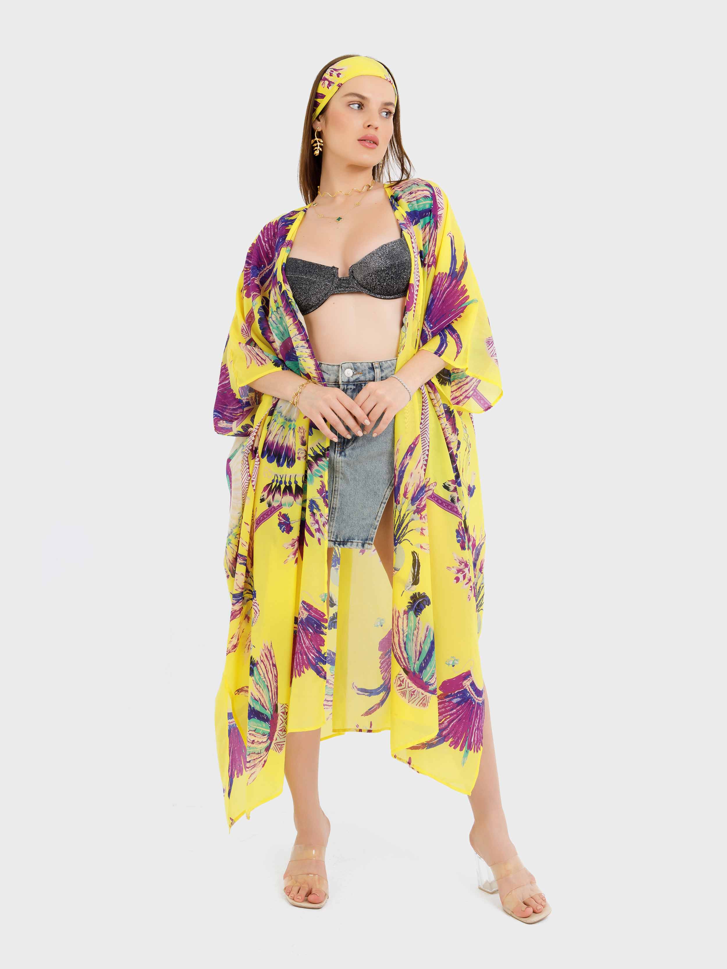 jay collection 2 - kimono chiffon / belt , Os , yellow , Style JayXMESS25101
