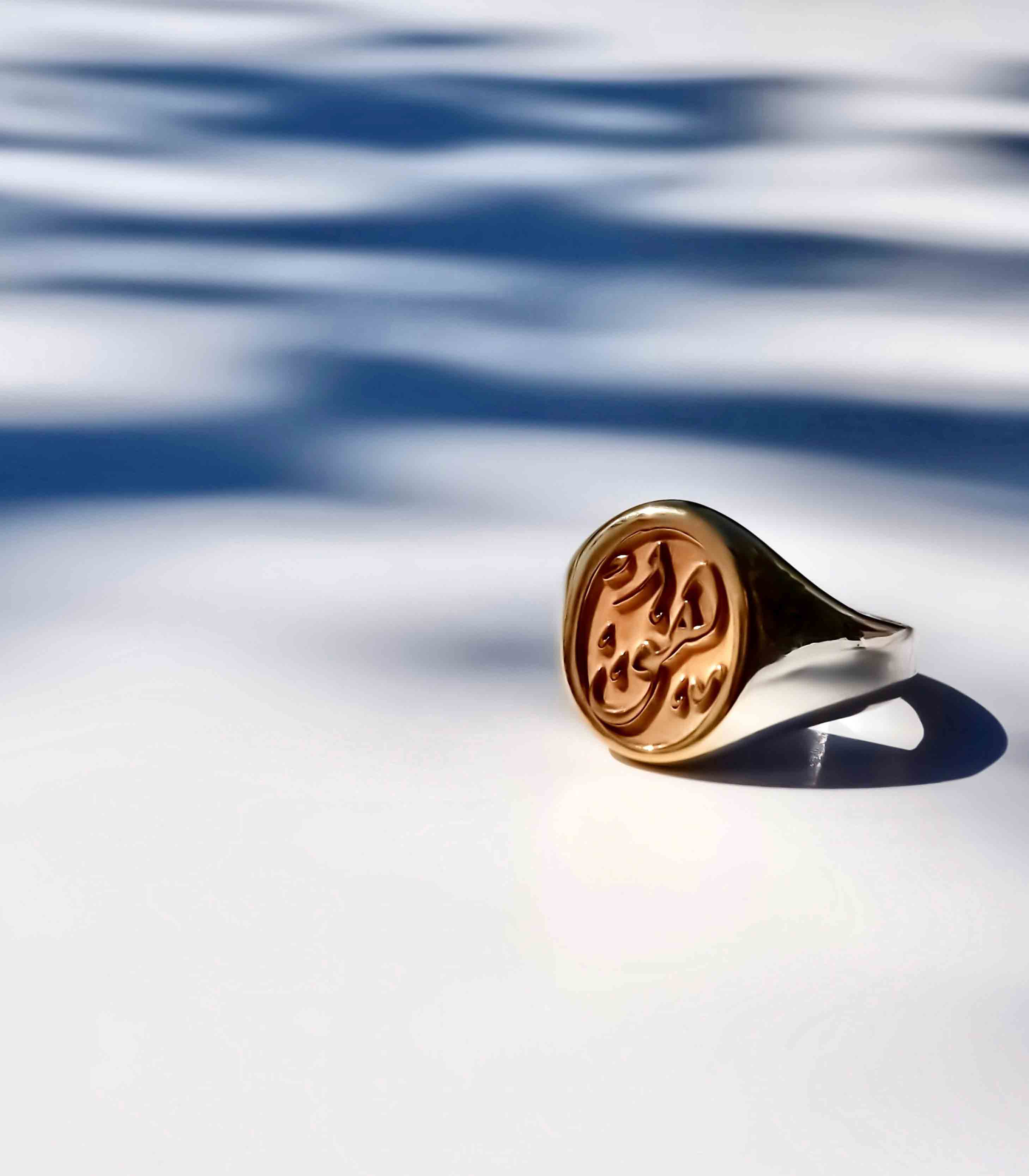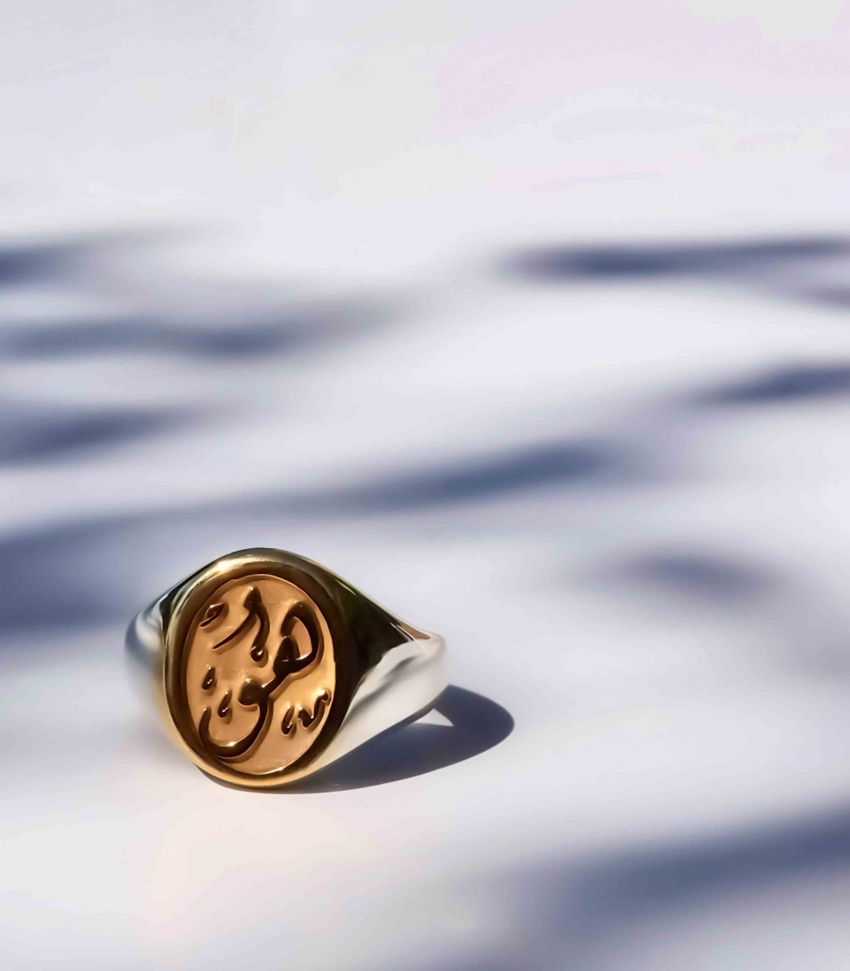 Characterized by its minimalist yet unique design, this piece is an artistic expression and bold statement. Inscribed is the word “هو” - meaning “Him”, combining meaningful messages of exquisite elegance and handcrafted artistry.