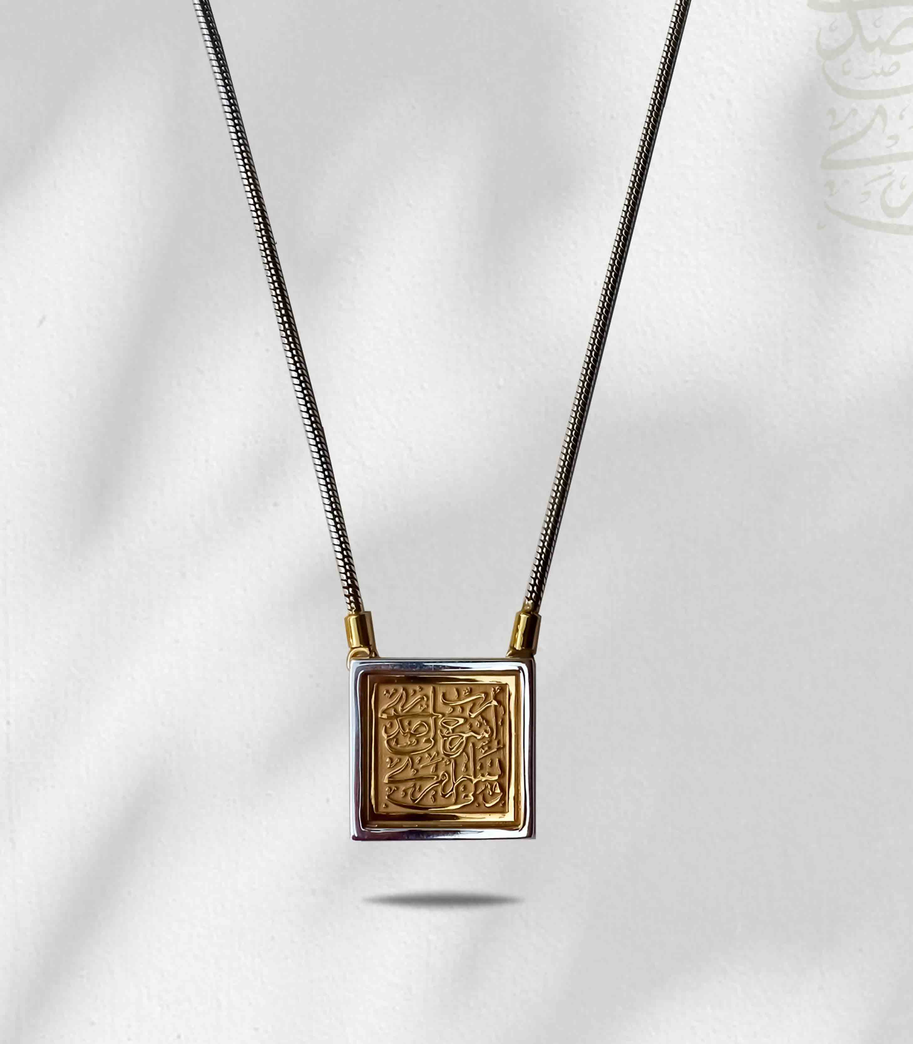 Eshrahli Sadri' Necklace An invocation, a prayer, a beckoning of light, this piece is an invitation to opening one’s heart. Inscribed is the verse “رَبِّ اشْرَحْ لِي صَدْرِي”- meaning ‘Oh God, Open My Heart’.
