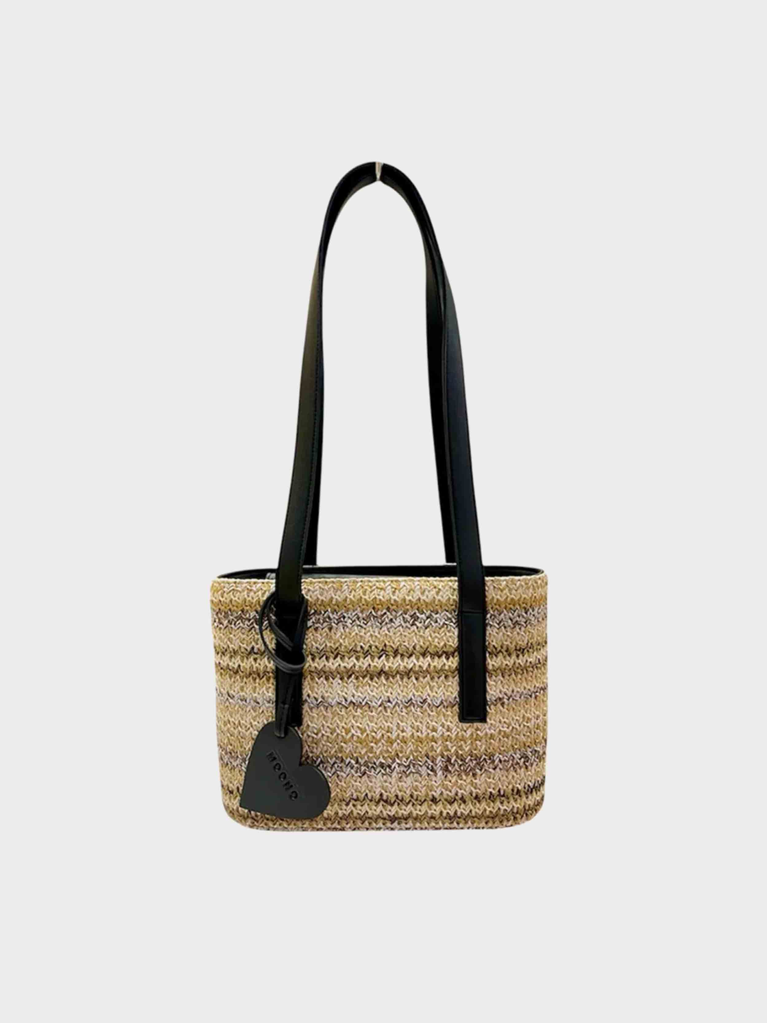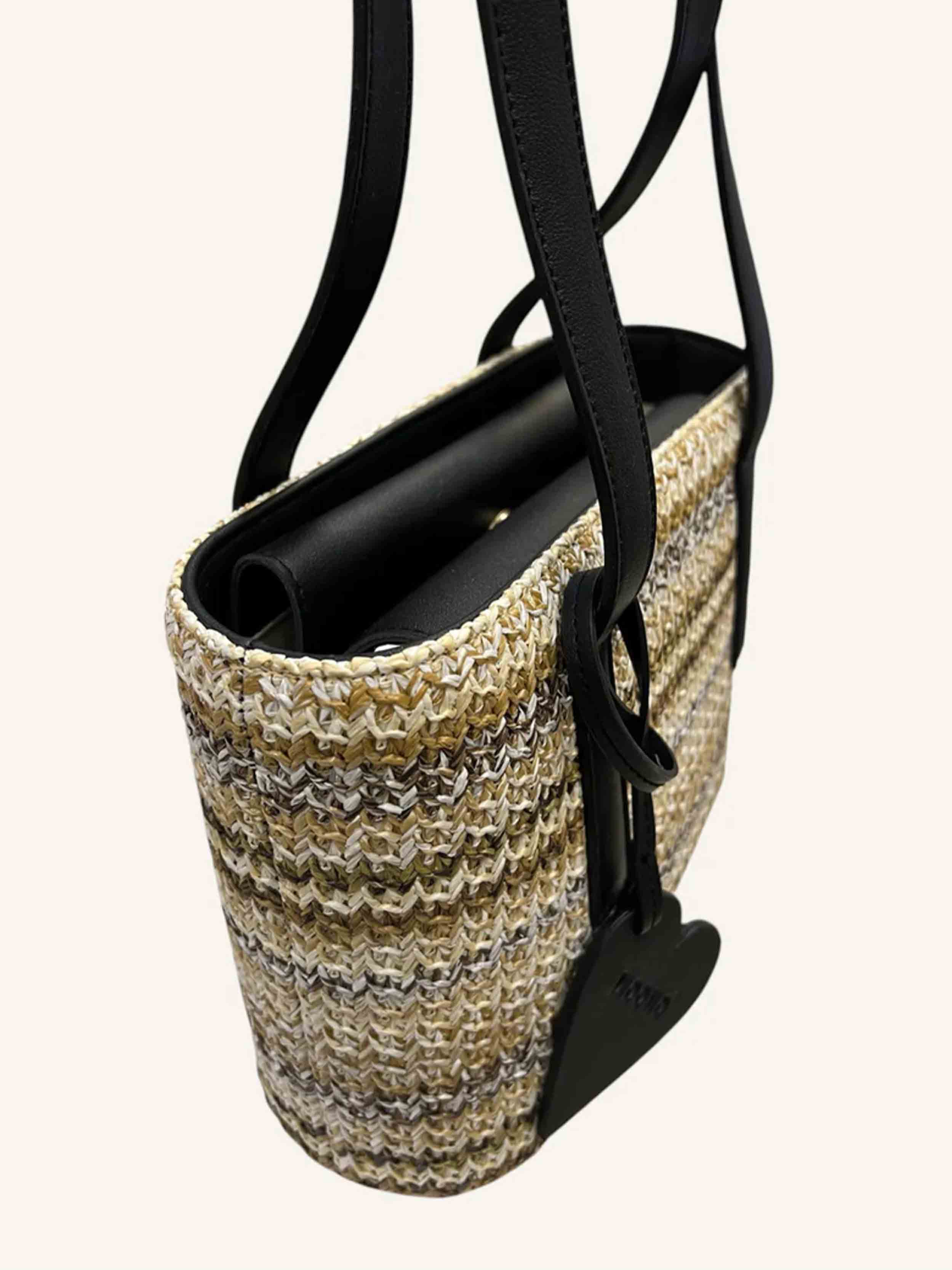 MOONO - Brown shaded Raffia mini tote with black straps and heart
