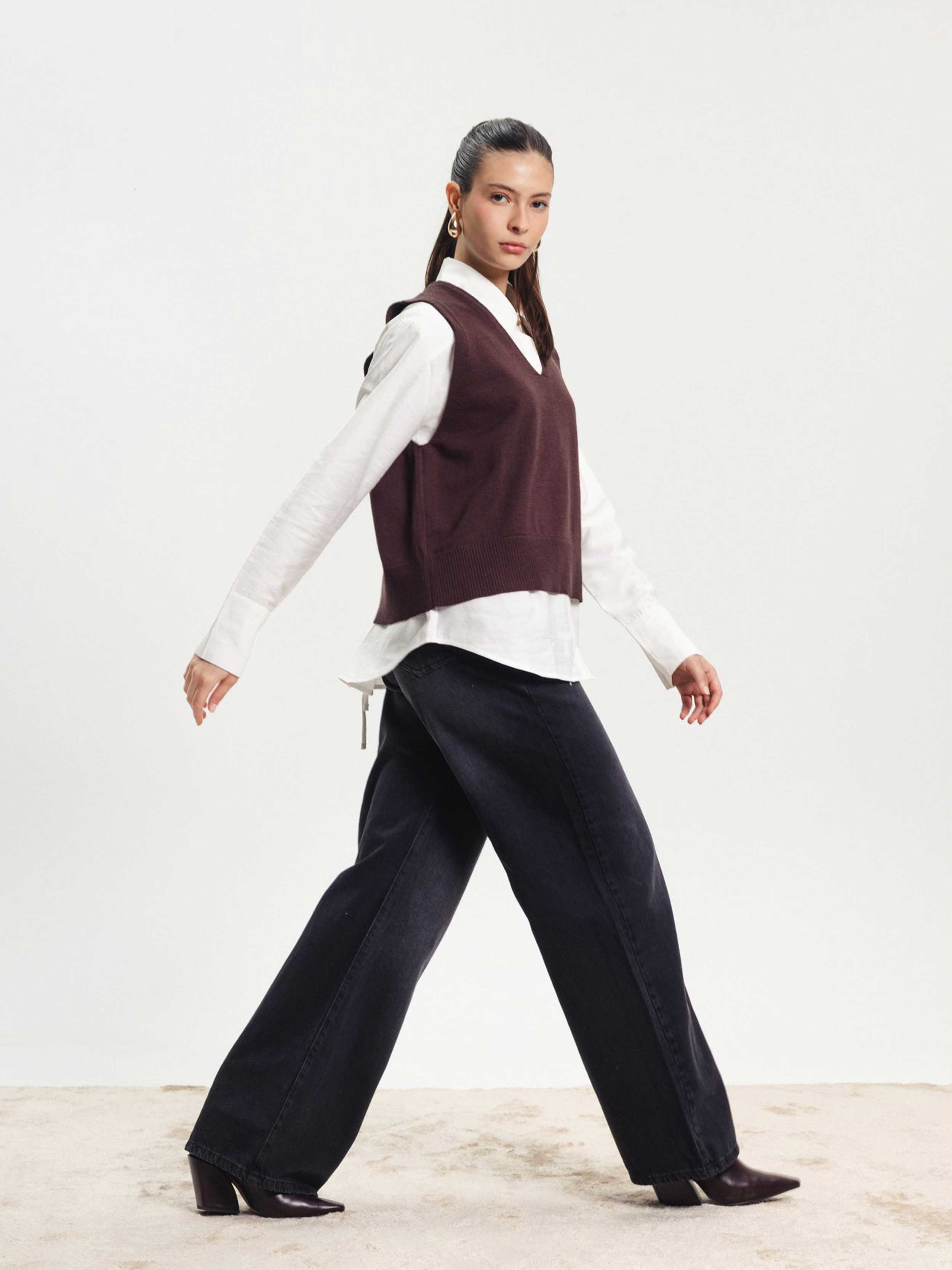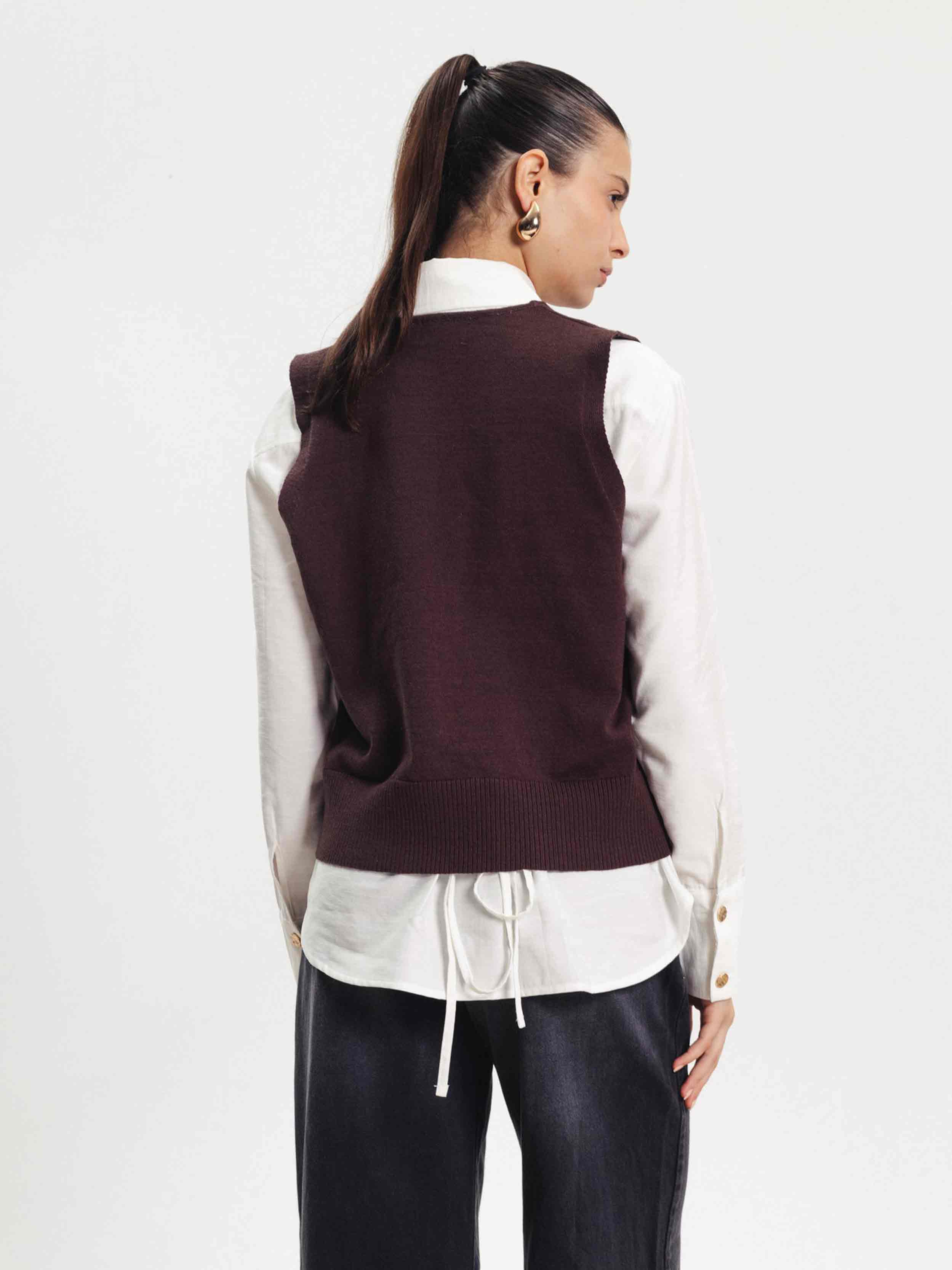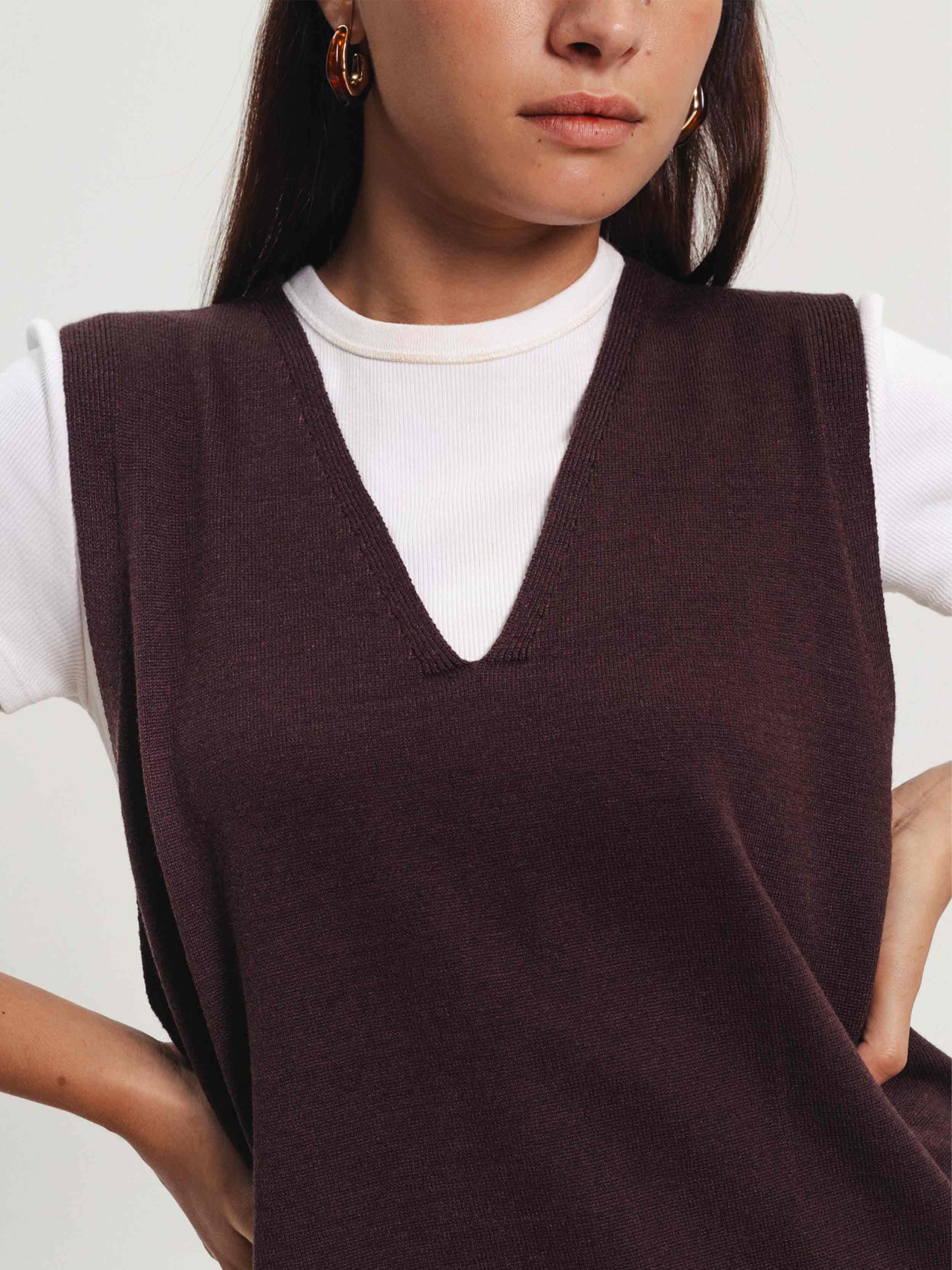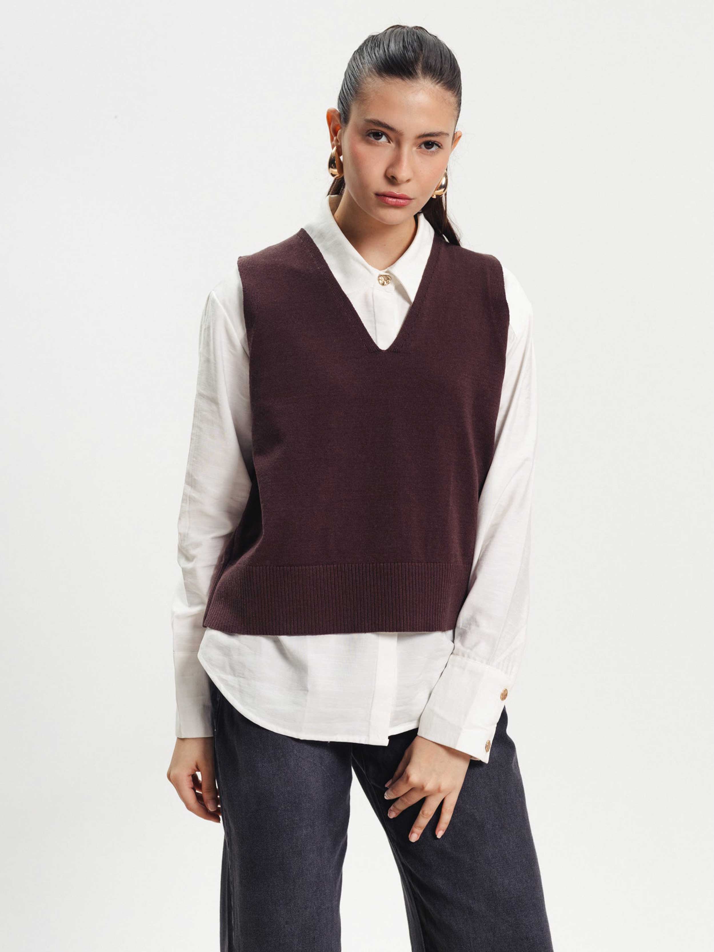 Camicie - KNIT BOXY VEST , SM , brown , Style WJ-KNBXV025