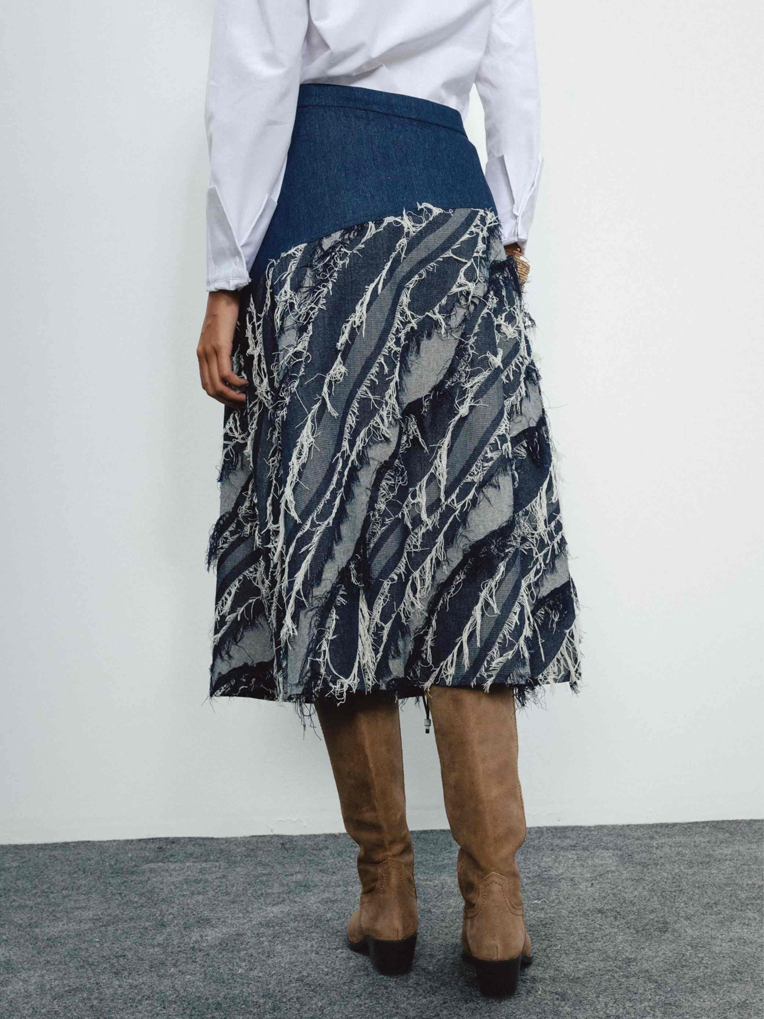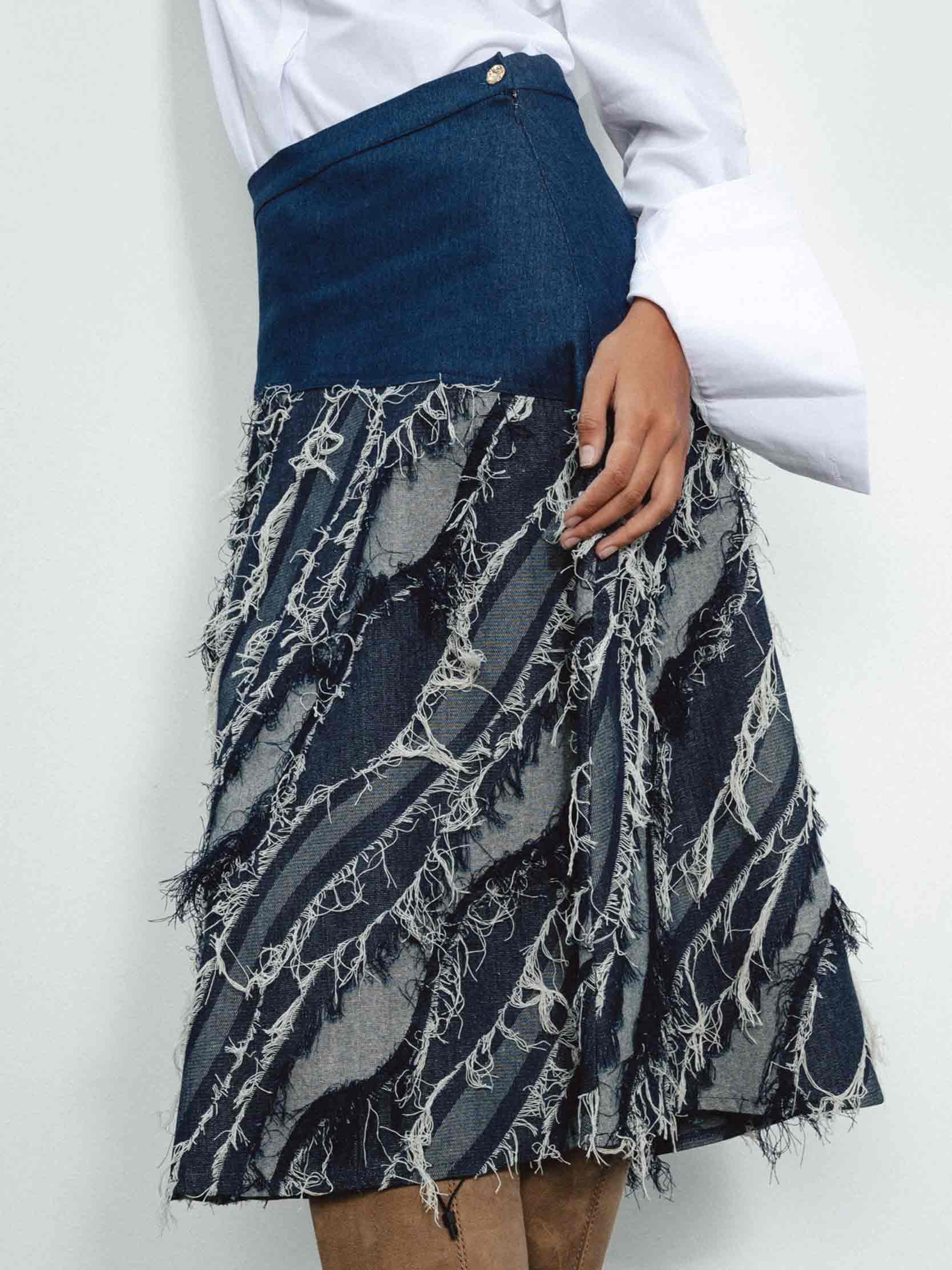 Camicie - FRAYED DENIM SKIRT , XL , BlueJeans , Style WK-FRDNS067